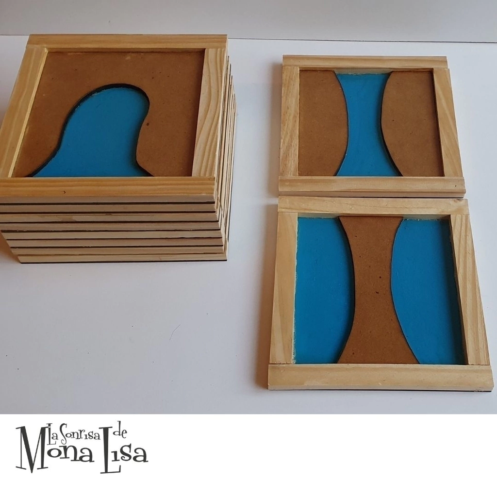 Set de 10 bandejas de madera plastificadas para rellenar con agua, que muestran los accidentes geográficos.